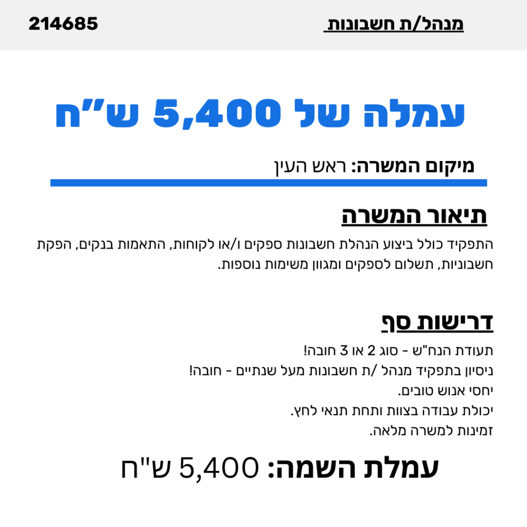אני הולך להראות לך איך לעשות ג'ובות מג'ובים! ואיך לקבל הרבה כסף מחברות כוח אדם - פשוט על ידי הפניות של מועמדים למשרות . קל מאוד לעשות את זה, וצריך להבין: על משרה של מנהל משמרת מחסן בבית שמש, הן מוכנות לשלם לך 3,560 ש"ח. על מנהל חשבונות בראש העין הן ישלמו לך– 5,400 ש"ח. מנהל פרויקטים בפתח תקווה ישלמו לך – 7,200 ש"ח. אלו הצעות שרצות עכשיו ויש עוד מלא.